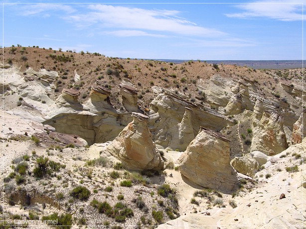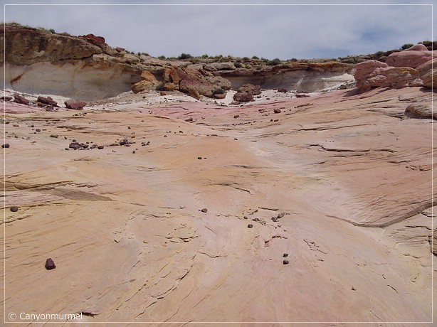 Tatsächlich kommt nach 1,3 Meilen der Zaun. Nun soll man links dem Zaun folge,n um zum Sidestep Canyon zu kommmen und rechts ist gleich das Rainbow Valley. Es ist bereits zu sehen. Wir wollen erstmal dahin.