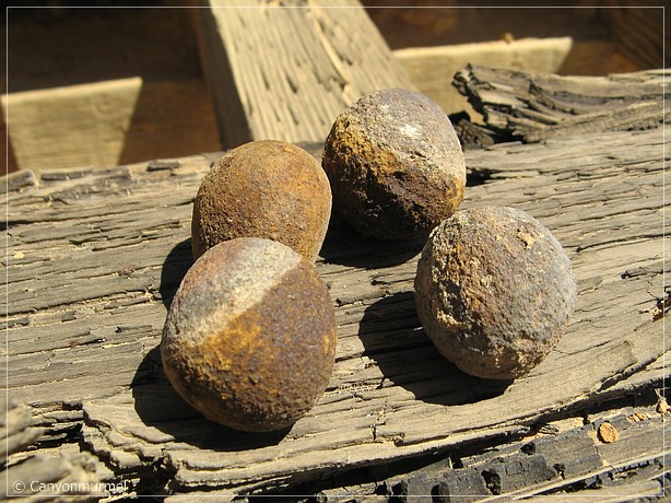 Sogar einige der Eisenkugeln auf der Mühle sind noch vorhanden.