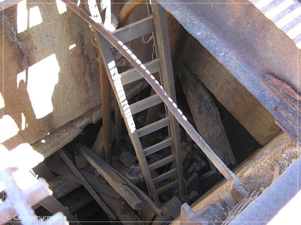 Auch einen Schacht finden wir, der in die Tiefe führt, daneben eine windige Leiter. Das waren schon mutige Menschen, die hier gearbeitet haben.