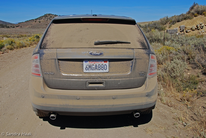 Im Motel schütteten wir noch einige Eiseimer Wasser über die Rückseite. Das Motel bot dicke Putzlappen an, die nutzten wir dazu. So brachten wir die Rückseite soweit sauber, daß man wieder ein- und ausladen kann, ohne von oben bis unten voll Staub zu sein.