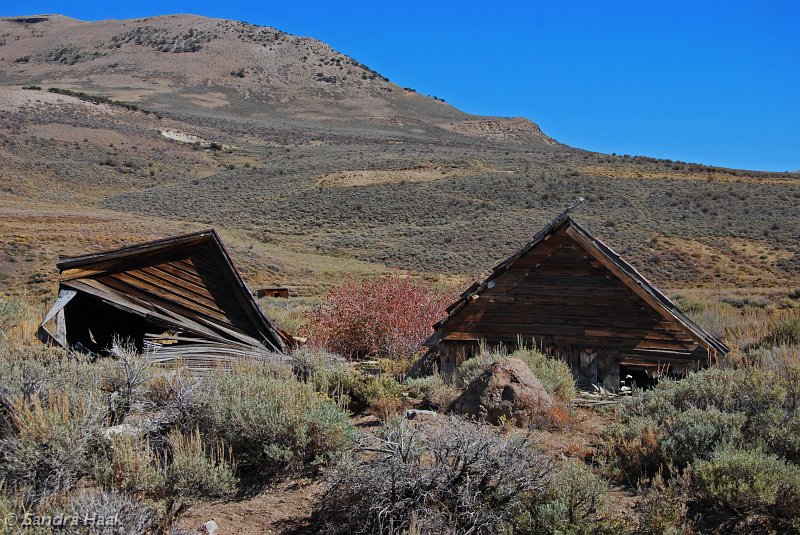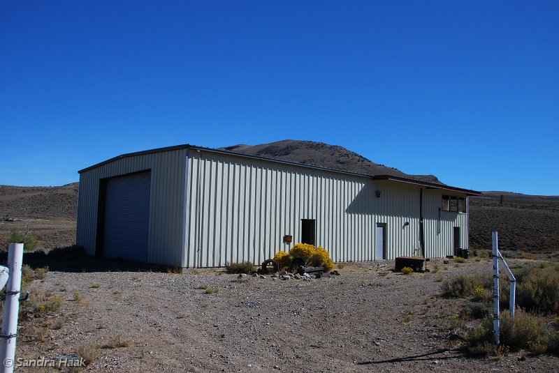 Dort angekommen sahen, wir ein Auto, einen Stuhl, eine Kühltasche, eine Gallone Wasser und eine giftgrüne Leiter an einem der alten Gebäude lehnen. Von der Mill sah kurz darauf ein junger Mann mit knallroten T-Shirt runter, der winkte und wieder verschwand. Auf seinem Rücken stand Adoptions Staff. Das war wohl einer der Freiwilligen, die sich um den Erhalt von Minen, Mills und Ghost Towns kümmern.