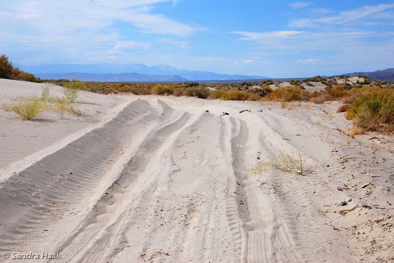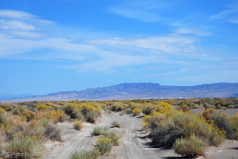 Heute sollte es nach Berlin gehen. Wir fuhren los und bald ging es nach Tonopah rechts ab. Aber, oh Überraschung, es hieß in 20 Meilen endet das Pavement, was soll das denn. Ich holte die Karte hervor und verglich sie mit meiner Route im GPS. Na toll, hab ich mich doch von Topo leimen lassen und auf eine Gravelroad schicken lassen. 80 Meilen lang, nein danke. Auf geteerten Straßen dauert es nach Berlin wohl Stunden, ohweh, das war mein Planungsfehler, da hatte ich nicht gründlich genug geschaut