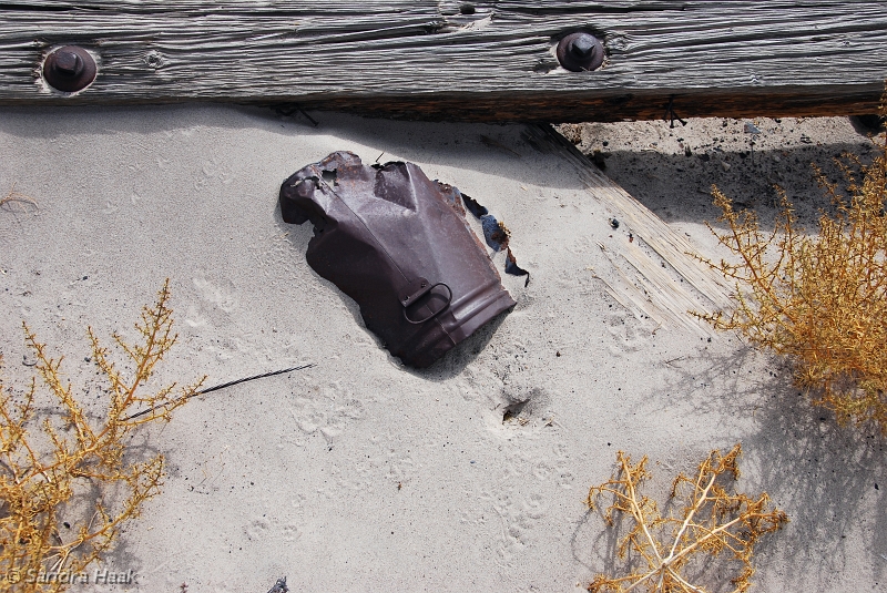 Klaus sah aber auf dem Weg durch Tonopah rechterhand noch etwas, was nach Mine aussah. Als wir abbogen und hochfuhren entpuppte sich dies aber als die wohl uralte Müllhalde des Ortes. Ich möchte sagen, mindestens eine Quadratmeile lag voll mit altem Schutt. Und ein Schild, daß man ja nichts mehr dazuwerfen durfte. Das war ein Paradies für Klaus. Er ging los und ich packte meinen Stuhl aus, einem Roman, ein Bier und setzte mich in die Sonne. Wir waren ganz allein, es war total still. Nur Klaus hörte man ab und zu. Er wurde fündig. Ein altes Tintenfaß und eine alte Flasche. Da wir von offiziellen Plätzen natürlich nie etwas mitnehmen, sind solche wilden Müllkippen, die seit x Jahrzehnten bestehen, natürlich eine Fundgrube.