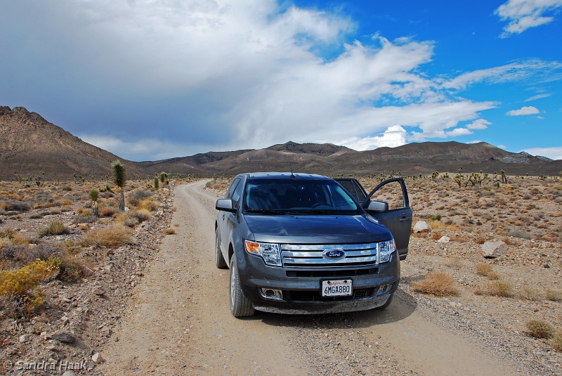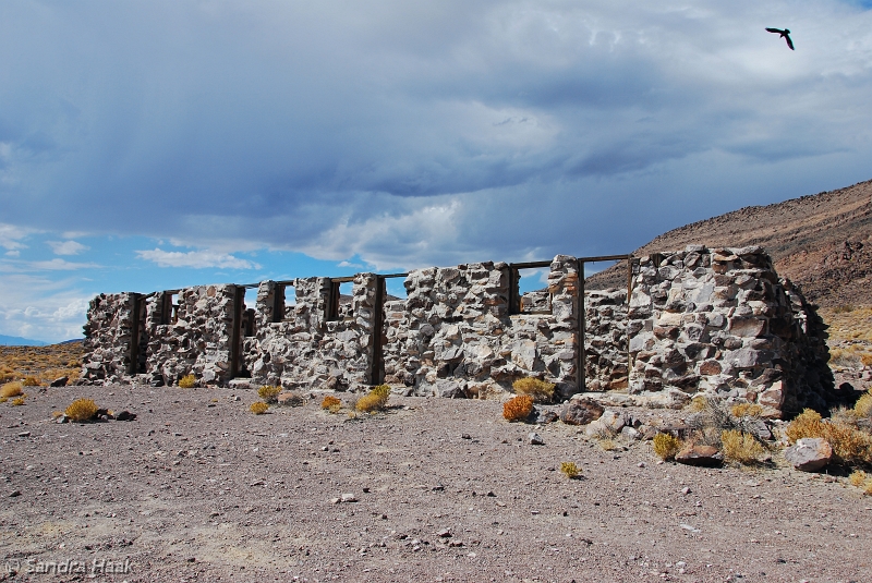 Dann fuhren wir noch eine Gravelroad Richtung Gold Point. Diese war frisch gegradet, da genau auf der Hälfte der Strecke zwischen Death Valley und Goldpoint nun eine Mine zu besichtigen sein soll. Naja, wir fuhren die 6 Meilen bis zur angeblichen Mine. Viel war hier nicht zu sehen, außer einer Parkuhr