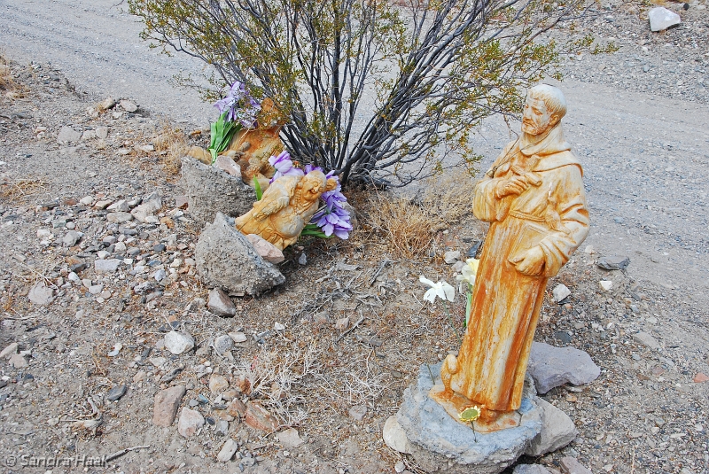 Auf dem weiteren Rückweg kamen wir wieder an einer Art Schrein vorbei. Ein alter aufgestellter Trailer mit Inschrift.
