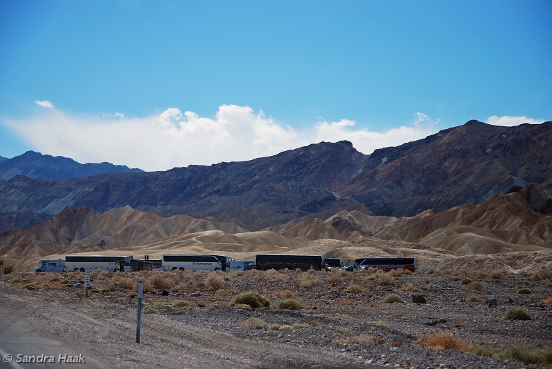 So fuhren wir über die 190 weiter Richtung Pahrump. Am Zabriskie Point mußte es heute was umsonst geben, wenn man die Zahl der Busse so ansah