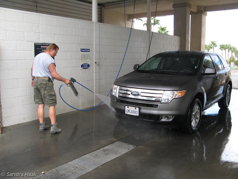 Nun gab es in der benachbarten Waschanlage erstmal eine Dusche für Edgi, der nicht mehr der sauberste war