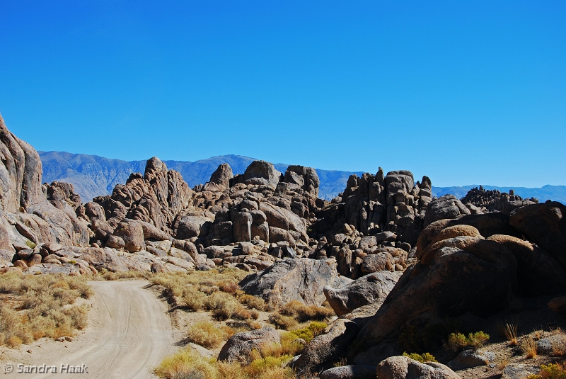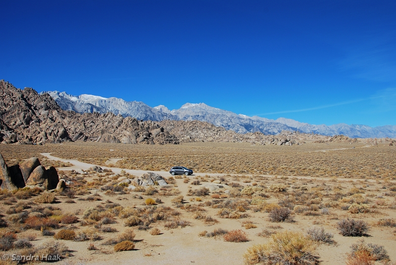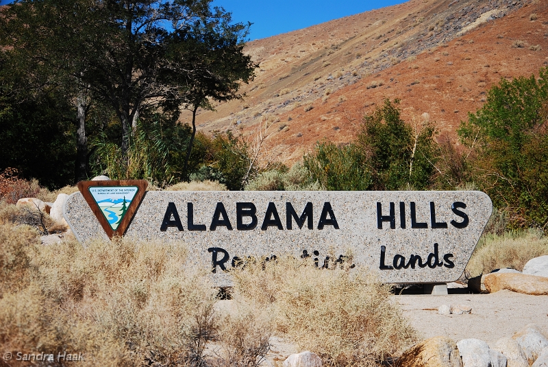 In Lone Pine angekommen, wurde mir klar, daß ich ja eigentlich gar nicht wußte, wo die Alabama Hills genau sind Aber mir fiel ein, daß es im Forum in den Reiseberichten immer hieß, an der einzigen Ampel links abbiegen