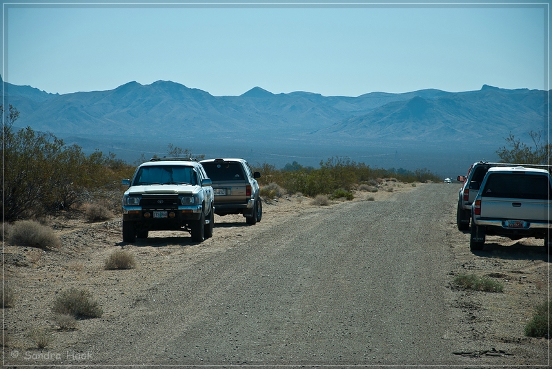 und machten uns auf den Weg. Zuerst nach Searchlight, dann nach Nipton. In Nipton ging es vor den Bahngleisen rechts weg.