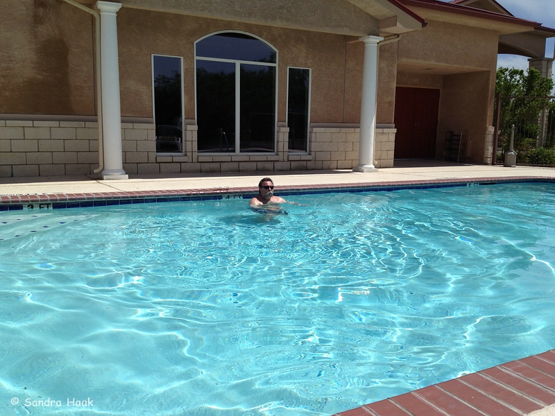 So wurde es der Pool, der tatsächlich offen war. Die Liegen hatten dicke Auflagen, leider waren sie alle triefend naß, also haben wir sie beiseite gelegt.