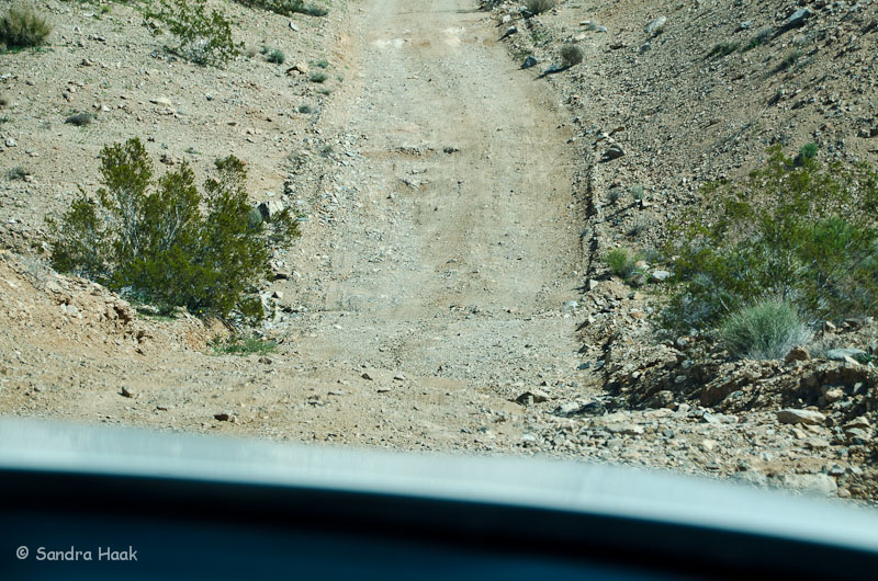 Weiter ging es zur Black Eagle Road. Auf dem Schild war von einer easy 4WD Strecke die Rede, also los. Es war auch easy, aber nach 7 Meilen war Schluss, ein tiefer Dip mit unförmigen Auswaschungen war uns zu gefährlich. Leider kommt das auf dem Foto überhaupt nicht raus, wie steil es da runter ging.
