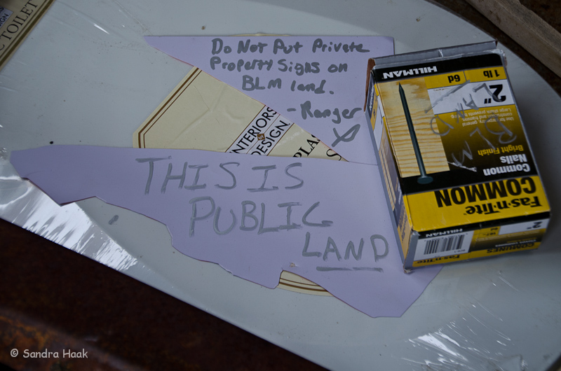 Links sahen wir bald ein Camp. Offensichtlich hatte sich hier jemand breit gemacht, dem BLM gefiel das gar nicht