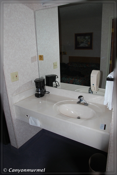 Idaho Springs - Heritage Inn Website: The Heritage Inn Bewertung: Stand: Mai 2010 Kommentar: Das Heritage Inn in Idaho Springs ist ein zweistöckiges Motel mit Außenkorridoren. Die Zimmer sind groß, mit Sitzgruppe, Kühlschrank, Microwelle und Kaffeemaschine. Es gibt verschiedene Zimmer. Die günstigsten liegen an der Straße und sind ganz normale Motelzimmer. Die teureren haben alle einen Balkon über dem Clear Creek. Die Aussicht auf den Fluß ist schön, aber dahinter befindet sich die Abraumhalde der Argo Gold Mine. Zum Frühstück gibt es Pastries. Wir haben es nicht ausprobiert. Es gibt einen Indoor-Pool. WLAN ist vorhanden, aber ein einloggen in das Netzwerk ist nicht möglich. Es gibt leider auch keine anderen Netze in der Umgebung, in die man sich einloggen könnte. In der Lobby steht ein PC zur Verfügung. Bilder: